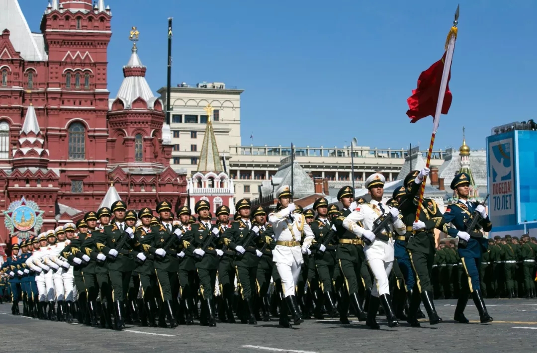 莫斯科,中國人民解放軍三軍儀仗隊參加紀念衛(wèi)國戰(zhàn)爭勝利70周年紅場閱兵式總彩排。(2015年5月7日,馬占成)