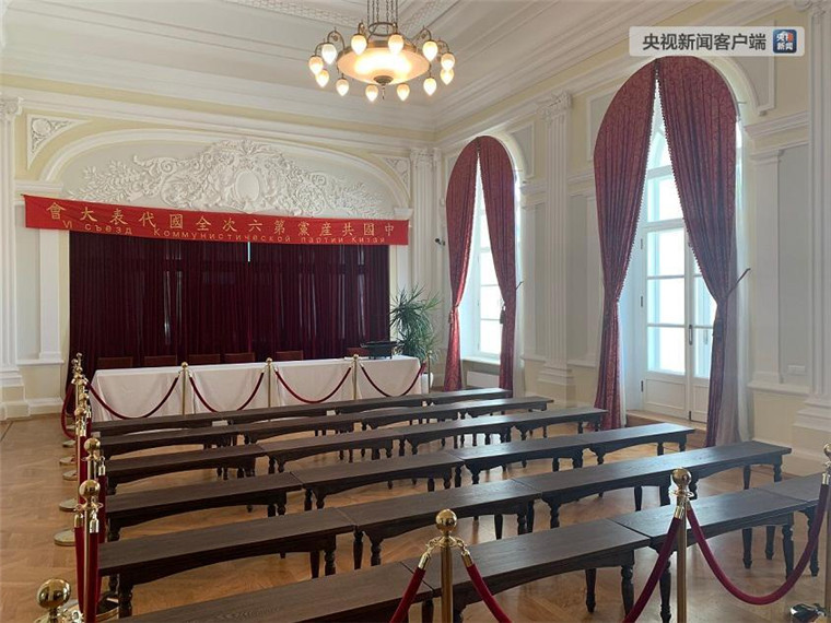 △位于小樓二層的會(huì)議室。當(dāng)年就是在這里,共產(chǎn)國際代表布哈林作了《中國革命與中國共產(chǎn)黨的任務(wù)》報(bào)告,瞿秋白作了政治報(bào)告,周恩來作了組織報(bào)告和軍事報(bào)告,李立三作了農(nóng)民問題報(bào)告。(央視記者拍攝)