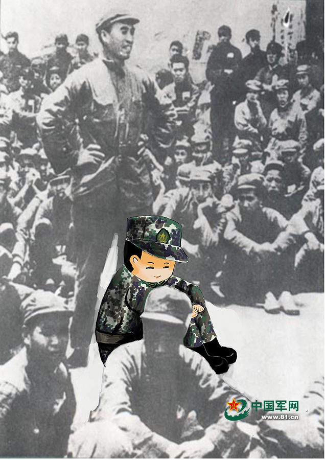 這是長征到達(dá)陜北后朱德給指戰(zhàn)員們講話的場景。朱德臉上洋溢的微笑告訴我們,我們勝利了!我也要坐在紅軍戰(zhàn)士們中間聆聽朱老總的教誨,感受這份勝利的喜悅。