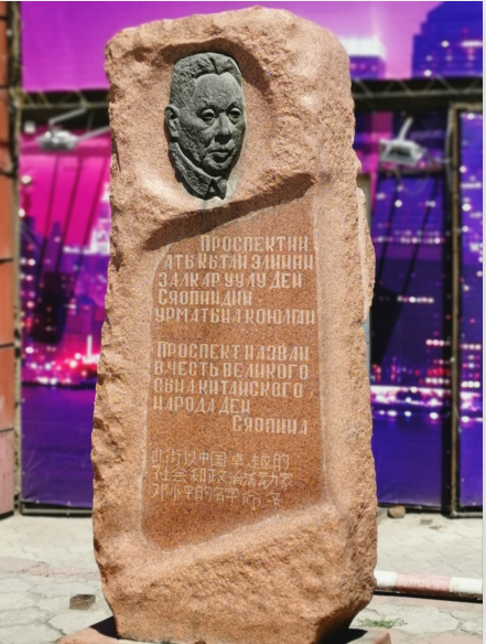 △在大街東端,矗立著一座兩米多高的紅色花崗巖紀念碑,碑的正面用中、吉、俄三種文字寫著:“此街以中國卓越的社會和政治活動家鄧小平的名字命名。”以鄧小平名字命名這條街的想法是1996年6月時任比什凱克市長、吉著名經(jīng)濟學家西拉耶夫提出來的,其目的是希望吉爾吉斯斯坦以中國為榜樣走改革開放之路。(央視記者張曉鵬拍攝)