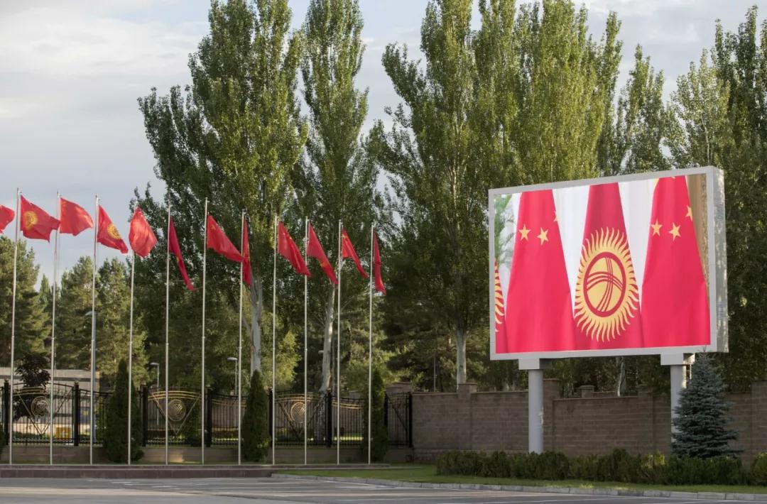 機(jī)場(chǎng)停機(jī)坪旁的大屏幕上循環(huán)播放兩國(guó)領(lǐng)導(dǎo)人此前會(huì)面的視頻。在比什凱克街頭所有大屏幕上,也都在播放相同的畫面。新華社記者 費(fèi)茂華 攝