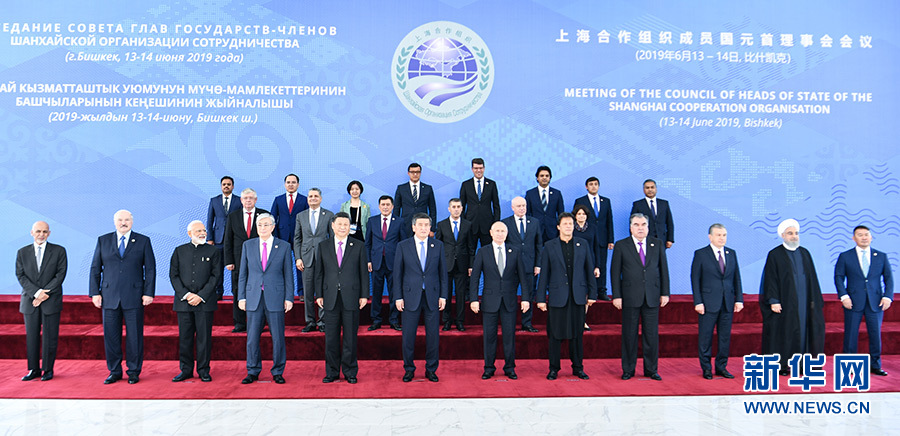 6月14日,上海合作組織成員國元首理事會第十九次會議在吉爾吉斯斯坦首都比什凱克舉行。國家主席習(xí)近平同印度總理莫迪、哈薩克斯坦總統(tǒng)托卡耶夫、吉爾吉斯斯坦總統(tǒng)熱恩別科夫、巴基斯坦總理伊姆蘭·汗、俄羅斯總統(tǒng)普京、塔吉克斯坦總統(tǒng)拉赫蒙、烏茲別克斯坦總統(tǒng)米爾濟(jì)約耶夫出席會議。習(xí)近平在會上發(fā)表重要講話。這是大范圍會談后,與會各方集體合影。 新華社記者 殷博古 攝