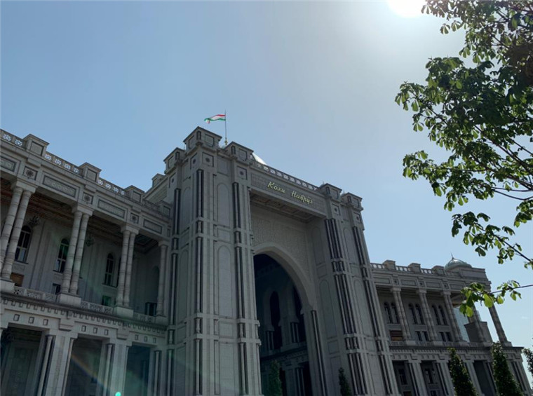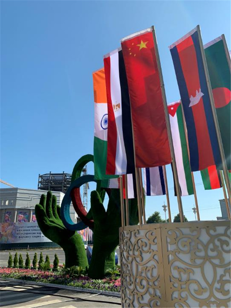 △街頭的亞信會(huì)標(biāo)和各國(guó)國(guó)旗。(央視記者石丞拍攝)