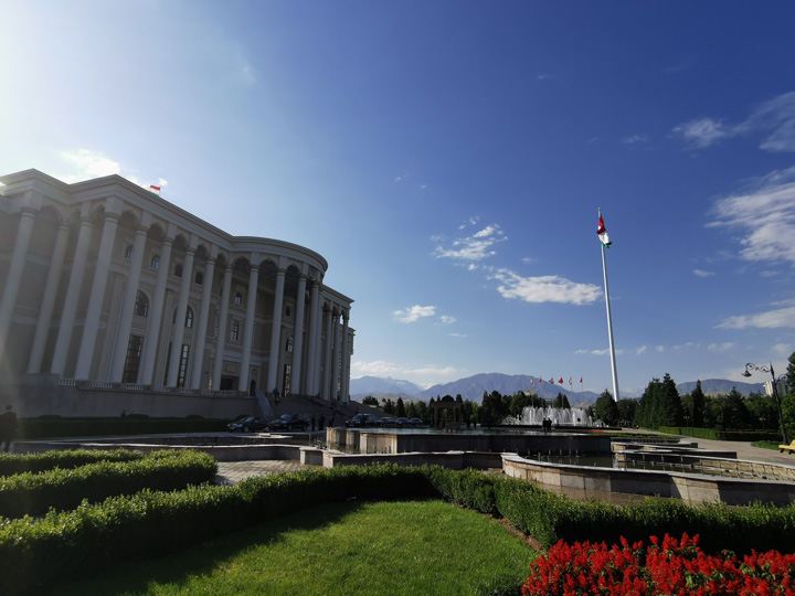 △塔吉克斯坦總統(tǒng)府,又稱民族宮,建成于2008年,位于杜尚別市中心。(央廣記者潘毅拍攝)