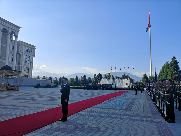 當(dāng)天下午,拉赫蒙在總統(tǒng)府前廣場為習(xí)近平舉行了盛大歡迎儀式。