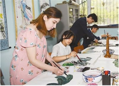 6月10日,學(xué)生在塔吉克斯坦民族大學(xué)孔子學(xué)院學(xué)習(xí)中國繪畫。新華社記者 沙達(dá)提攝