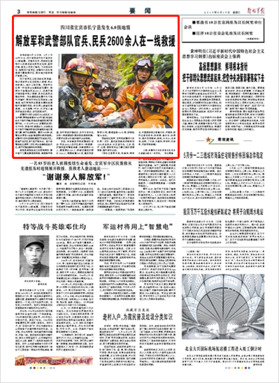 6月17日22時(shí)55分,四川省宜賓市長寧縣發(fā)生6.0級(jí)地震。災(zāi)情發(fā)生后,西部戰(zhàn)區(qū)聯(lián)指中心迅速啟動(dòng)應(yīng)急響應(yīng)機(jī)制,查明災(zāi)情、核實(shí)人員傷亡情況、下達(dá)預(yù)先號(hào)令,指揮四川省軍區(qū)、武警四川總隊(duì)等救援力量馳援災(zāi)區(qū),配合地方政府展開救援工作。請(qǐng)關(guān)注今日《解放軍報(bào)》的報(bào)道——