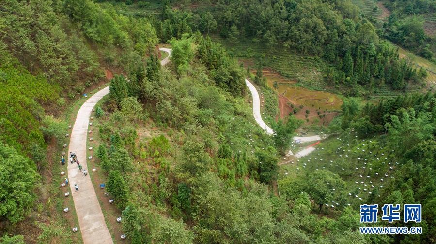 云南省西盟縣勐梭鎮(zhèn)班母村中華蜂養(yǎng)殖基地一景(6月16日無(wú)人機(jī)拍攝)。 精準(zhǔn)扶貧的春風(fēng),吹到了西南邊疆。在云南省西盟縣的拉祜山寨,人們告別了吃不飽、穿不暖、沒(méi)有安全住房的日子。學(xué)習(xí)先進(jìn)技術(shù),改變精神面貌,發(fā)展養(yǎng)蜜蜂、種甘蔗等甜蜜產(chǎn)業(yè),拉祜人的日子越過(guò)越甜。 新華社記者 胡超 攝