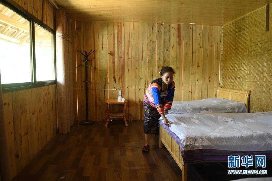 6月10日,姿梅在整理傳統(tǒng)竹樓客房。 基諾族婦女姿梅是云南省景洪市基諾山基諾族鄉(xiāng)巴飄村村民。近年來,在國家扶貧政策的帶動下,她和家人積極從事鄉(xiāng)村民宿旅游,出售生態(tài)茶葉、野生蜂蜜和傳統(tǒng)民族織物等,經(jīng)濟(jì)條件明顯改善?;Z族是新中國成立后從原始社會末期直接過渡到社會主義社會的“直過民族”,1979年6月被國務(wù)院正式確認(rèn)為單一民族。 新華社記者 秦晴 攝