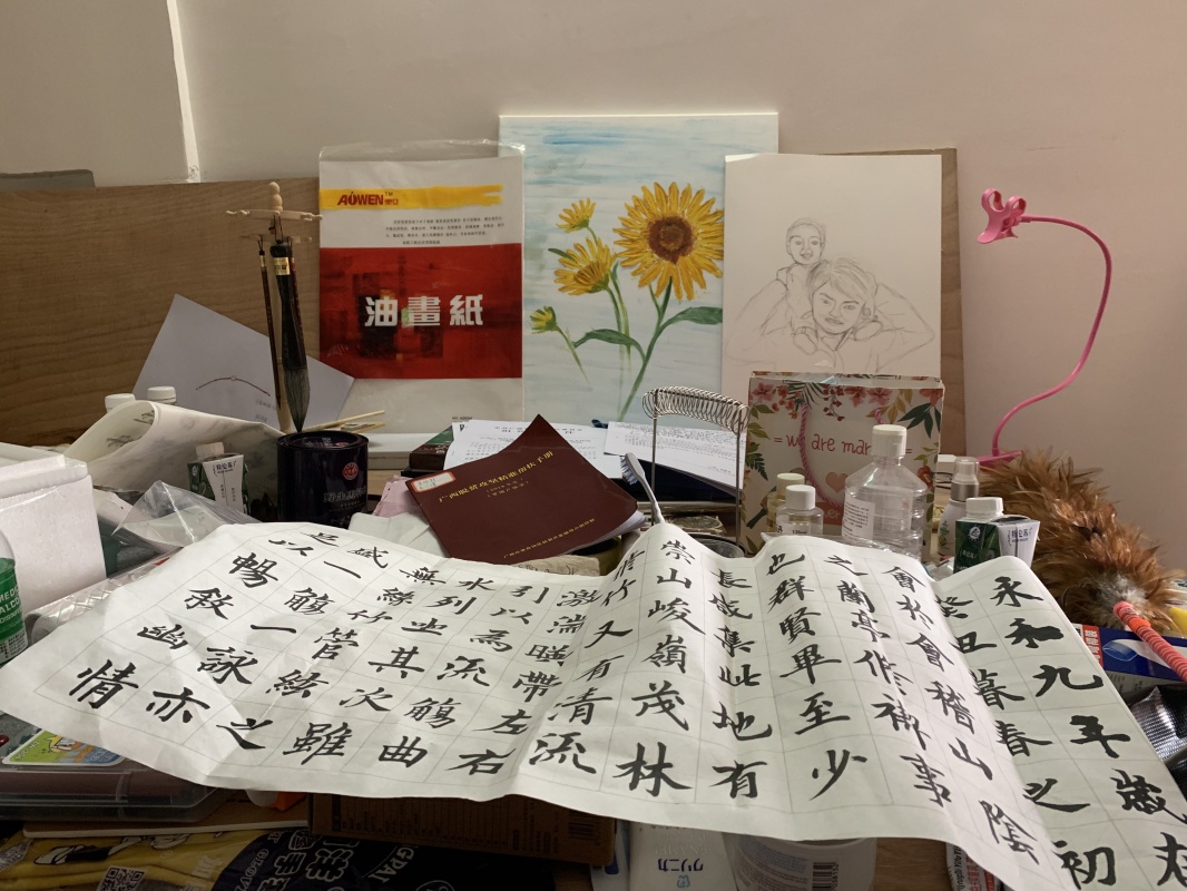 這是在黃文秀宿舍拍攝的她的書法繪畫習(xí)作( 6月20日攝)。新華社記者徐海濤攝