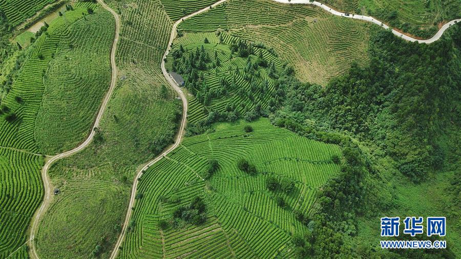 這是7月1日無(wú)人機(jī)航拍的丹寨扶貧茶園。2018年以來(lái),貴州省丹寨縣的丹寨扶貧茶園采取社會(huì)公眾線上認(rèn)領(lǐng)茶園,茶園聘請(qǐng)當(dāng)?shù)刎毨魟?wù)工的模式帶動(dòng)當(dāng)?shù)刎毨裘撠氃鍪?。新華社記者歐東衢攝