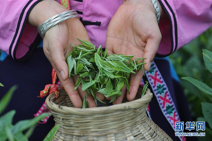 7月1日,當(dāng)?shù)剞r(nóng)民在丹寨扶貧茶園內(nèi)采茶。2018年以來(lái),貴州省丹寨縣的丹寨扶貧茶園采取社會(huì)公眾線上認(rèn)領(lǐng)茶園,茶園聘請(qǐng)當(dāng)?shù)刎毨魟?wù)工的模式帶動(dòng)當(dāng)?shù)刎毨裘撠氃鍪铡P氯A社記者歐東衢攝