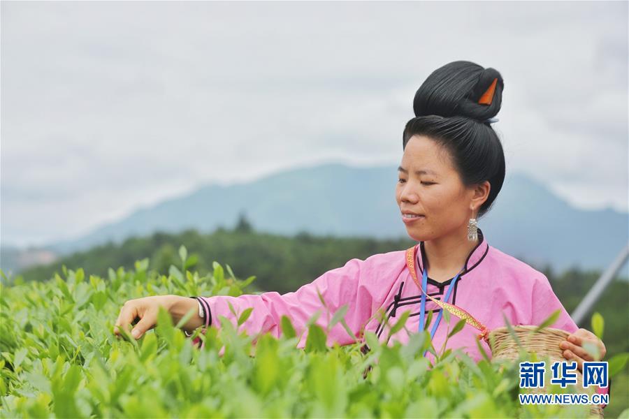 7月1日,當(dāng)?shù)剞r(nóng)民在丹寨扶貧茶園內(nèi)采茶。2018年以來(lái),貴州省丹寨縣的丹寨扶貧茶園采取社會(huì)公眾線上認(rèn)領(lǐng)茶園,茶園聘請(qǐng)當(dāng)?shù)刎毨魟?wù)工的模式帶動(dòng)當(dāng)?shù)刎毨裘撠氃鍪?。新華社記者歐東衢攝