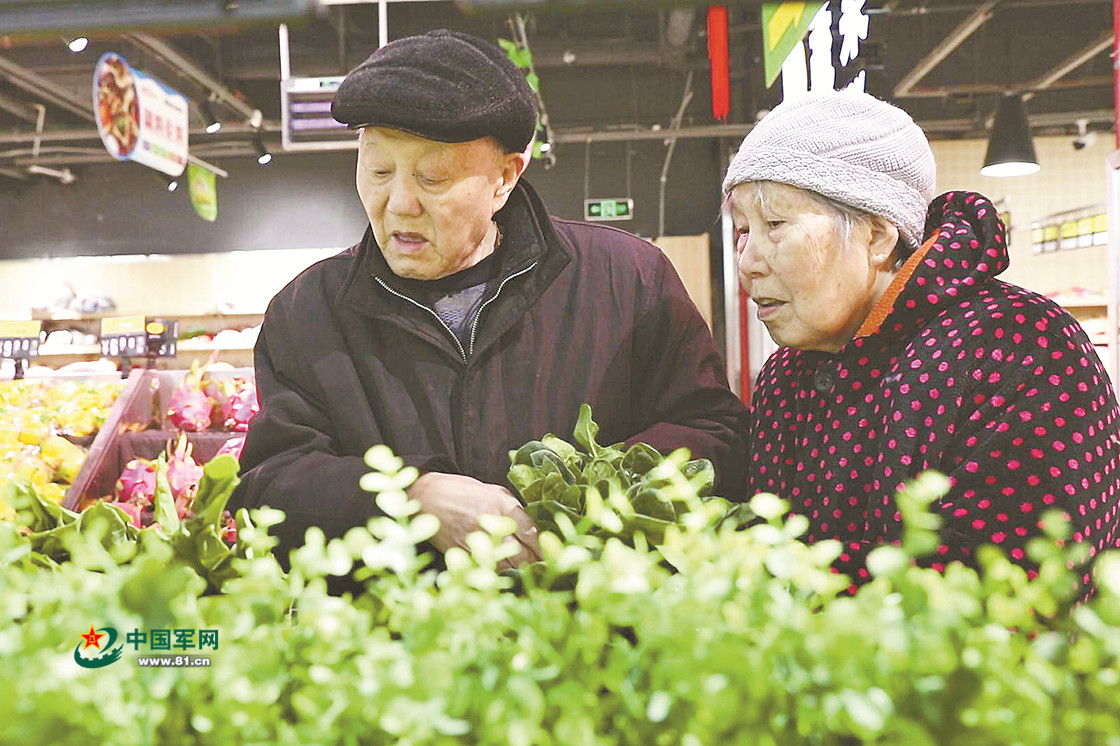 張富清與老伴孫玉蘭在超市買菜。 朱 勇攝