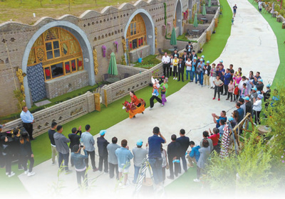 西吉縣吉強(qiáng)鎮(zhèn)龍王壩村脆弱的生態(tài)環(huán)境逐步修復(fù)。圖為游客在觀看社火表演。新華社記者 郭緒雷攝