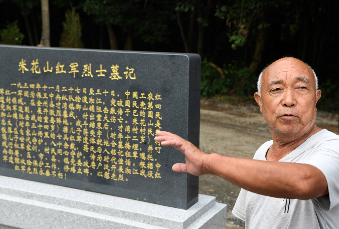 戰(zhàn)斗結(jié)束后,蔣石林的爺爺蔣忠太帶著12歲的蔣受宇去距離自家老宅三四里路遠(yuǎn)的米花山砍柴。在亂樹叢中,父子倆發(fā)現(xiàn)了7具紅軍遺體。