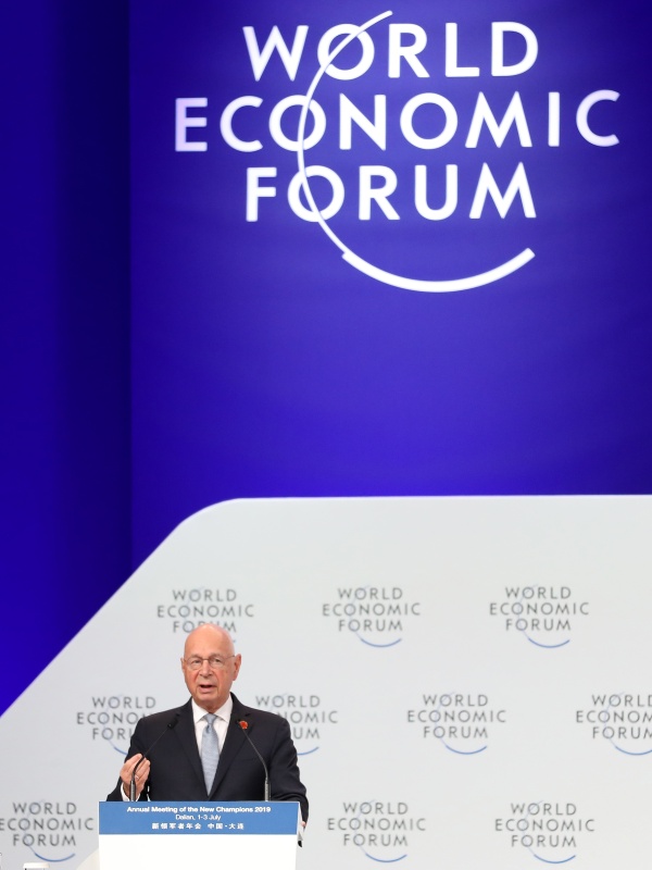 7月2日,世界經(jīng)濟(jì)論壇創(chuàng)始人兼執(zhí)行主席克勞斯·施瓦布在開幕式上致辭。新華社記者 姚劍鋒 攝