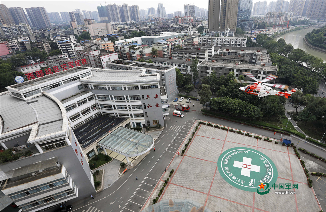 7月2日,一架搭載空軍“重傷員”的救援直升機(jī)準(zhǔn)備降落在西部戰(zhàn)區(qū)空軍醫(yī)院專用機(jī)降場。