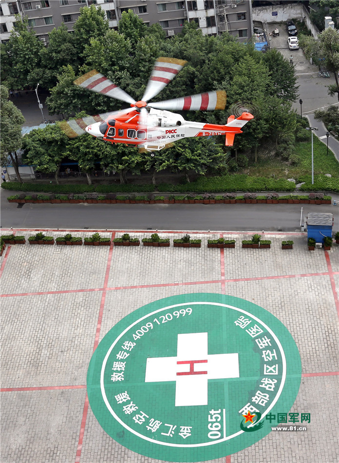 7月2日,西部戰(zhàn)區(qū)空軍組織一架通航公司救援直升機在西部戰(zhàn)區(qū)空軍醫(yī)院機降場進行起降飛行訓練。