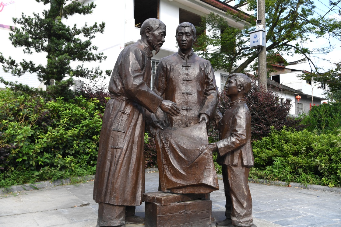 這是廣西灌陽縣新圩阻擊戰(zhàn)陳列館前廣場(chǎng)上的祖孫三代保紅旗的雕塑。從左至右依次是黃合林、黃榮清、黃光文(6月28日攝)。新華社記者周華 攝