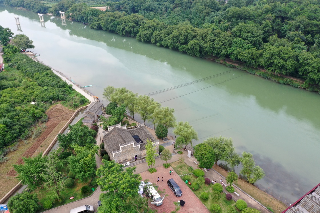 這是位于廣西興安縣界首渡口附近的“三官堂”和湘江河段(6月29日無人機拍攝)。新華社記者 陸波岸 攝