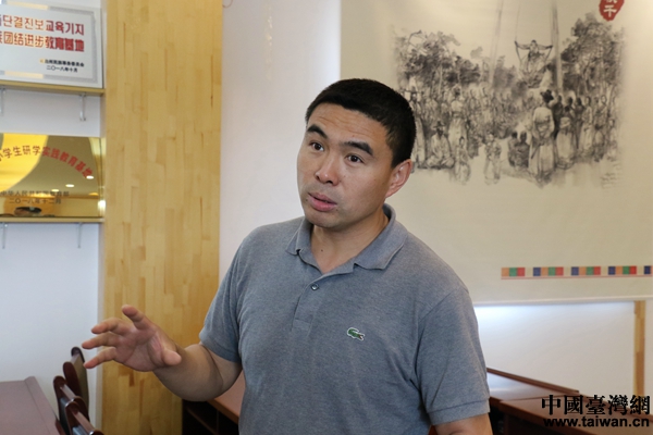 水南村第一書記姜云東向采訪團(tuán)介紹村中產(chǎn)業(yè)發(fā)展概況。(中國臺(tái)灣網(wǎng) 尹賽楠 攝)