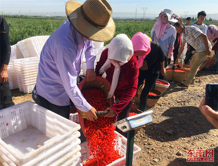 在枸杞采摘期,每天都有上千名農(nóng)民參與采摘,增加收入。 東南網(wǎng)記者 顏財(cái)斌 攝