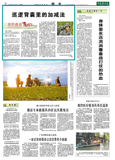 入伍18年,我先后參加了80余次巡邏,行程累計2萬余公里,47次與死神擦肩而過,累計用壞12個背囊。背囊雖無言,卻是我朝夕相處的“戰(zhàn)友”,親密無間。