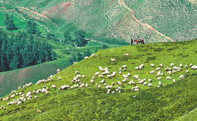 圖為近日,牧民在祁連縣一處牧場放牧。