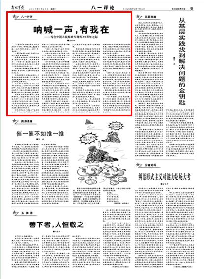 吶喊一聲,有我在——寫在中國人民解放軍建軍92周年之際