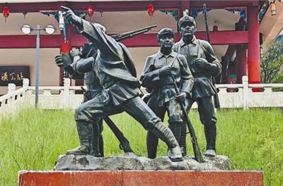 兩河口會議紀(jì)念館里的“紅軍北上”雕像。