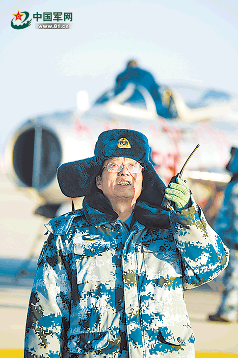 上圖:某型無人機放飛前,趙煦院士在機場一線指揮。楊 軍攝