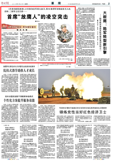 在第81集團軍某特戰(zhàn)旅,無人機技師、二級軍士長閆濤是名副其實的首席“放鷹人”。入伍21年,閆濤與無人機打了21年交道。至今,閆濤操縱過13種型號的無人機,飛行時間超過4000小時,多次參加新裝備接裝工作,10多次參加軍以上比武演習。請關注今天出版的《解放軍報》的報道——