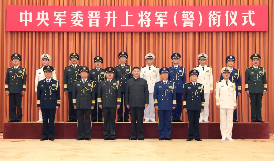 習(xí)近平頒發(fā)命令狀并向晉銜的軍官警官表示祝賀