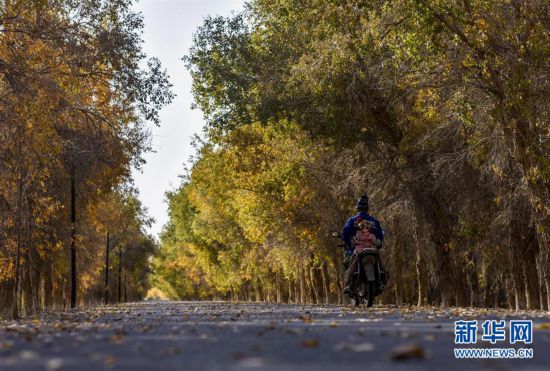 這是新疆生產(chǎn)建設(shè)兵團第二師三十四團一條道路上的秋景(2017年10月21日攝)。 新華社記者 趙戈 攝