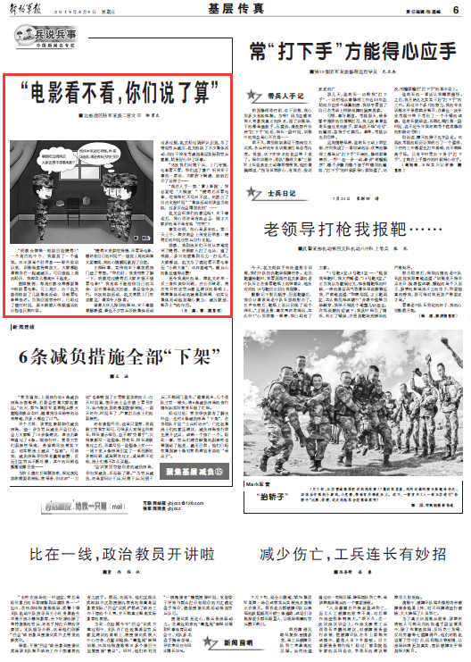 由于不少官兵反映集體活動過多過頻,北部戰(zhàn)區(qū)陸軍某旅機關經過調研認識到,為了幫助官兵減壓,機關組織了不少集體活動,但由于沒有考慮到基層實際和官兵意愿,結果好心辦了壞事。 這次機關為了確定看不看電影問需于兵、上門尋策,這樣接地氣、暖兵心的做法值得點贊!請關注今日《解放軍報》的報道——