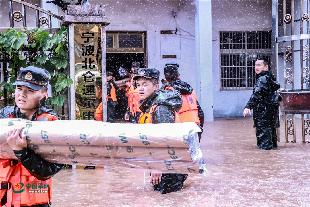武警官兵幫助村民轉(zhuǎn)移物資。