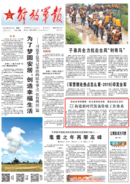 前不久,陸軍在京組織機關(guān)、部隊、院校和軍工集團等單位200余名代表,召開陸軍裝備價格工作會議,深入研究裝備價格工作轉(zhuǎn)型建設,著力構(gòu)建以“突出全壽命管理、優(yōu)化競爭性采購、推進法治化定價”為特點的新時代陸軍裝備價格工作體系。請關(guān)注今日《解放軍報》的報道——