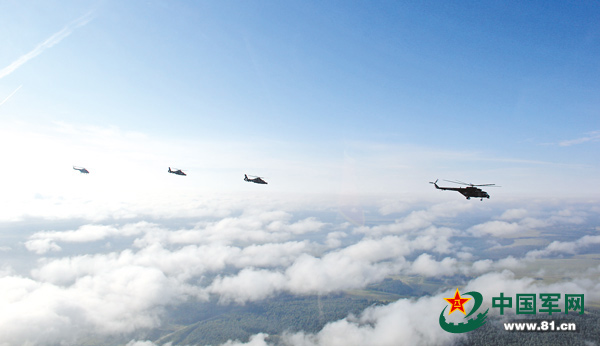第79集團軍某旅混合編隊空中飛行。譚長俊攝