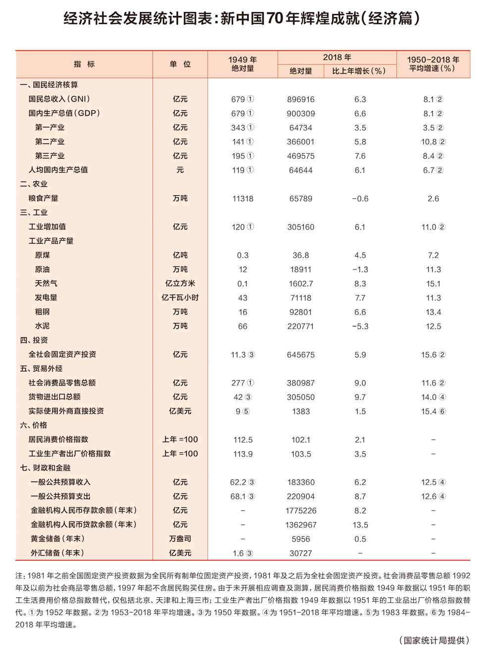 經(jīng)濟(jì)社會(huì)發(fā)展統(tǒng)計(jì)圖表:新中國(guó)70年輝煌成就(經(jīng)濟(jì)篇)