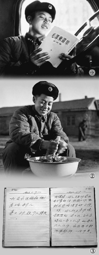 圖①:雷鋒在工作間隙閱讀《毛澤東選集》。圖②:雷鋒在幫戰(zhàn)友洗衣服。圖③:雷鋒日記。(以上資料圖片由遼寧省撫順市雷鋒紀念館提供)