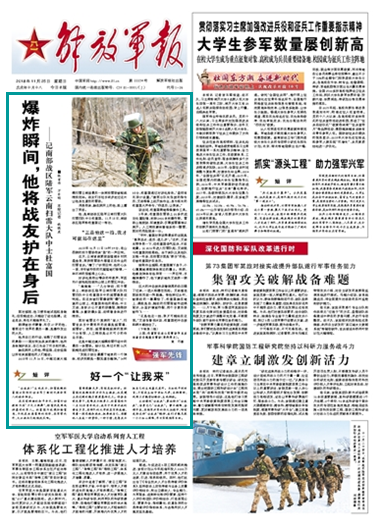 “讓我來!”生死關(guān)頭,掃雷英雄杜富國以實際行動書寫了新時代革命軍人的使命擔(dān)當(dāng)。在沒有硝煙的和平年代,掃雷行動被稱為在“刀尖上跳舞”,排雷兵是離死神最近的軍人。杜富國為邊境掃除雷患、為戰(zhàn)友血染雷場的壯舉,在軍營內(nèi)外、大江南北引起強(qiáng)烈反響。