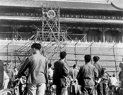 1950年9月30日,中華人民共和國國徽第一次高高懸掛在天安門城樓上。