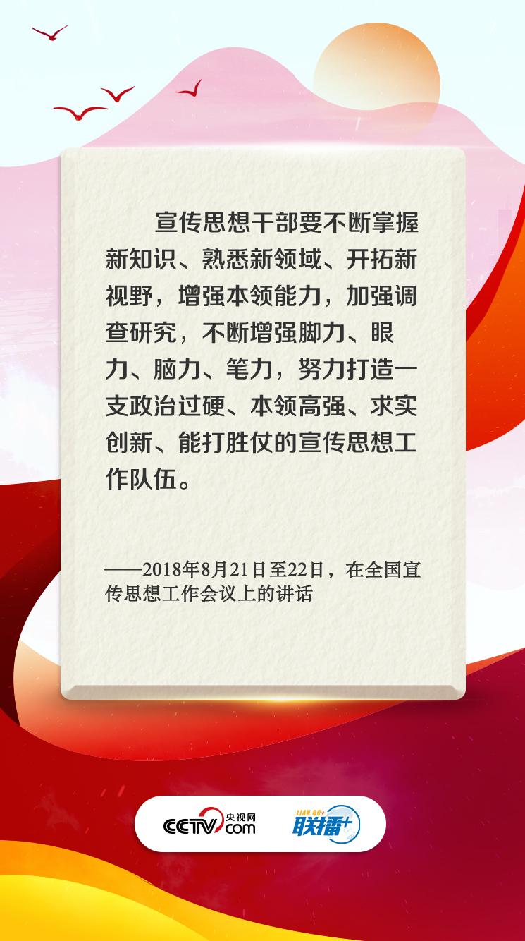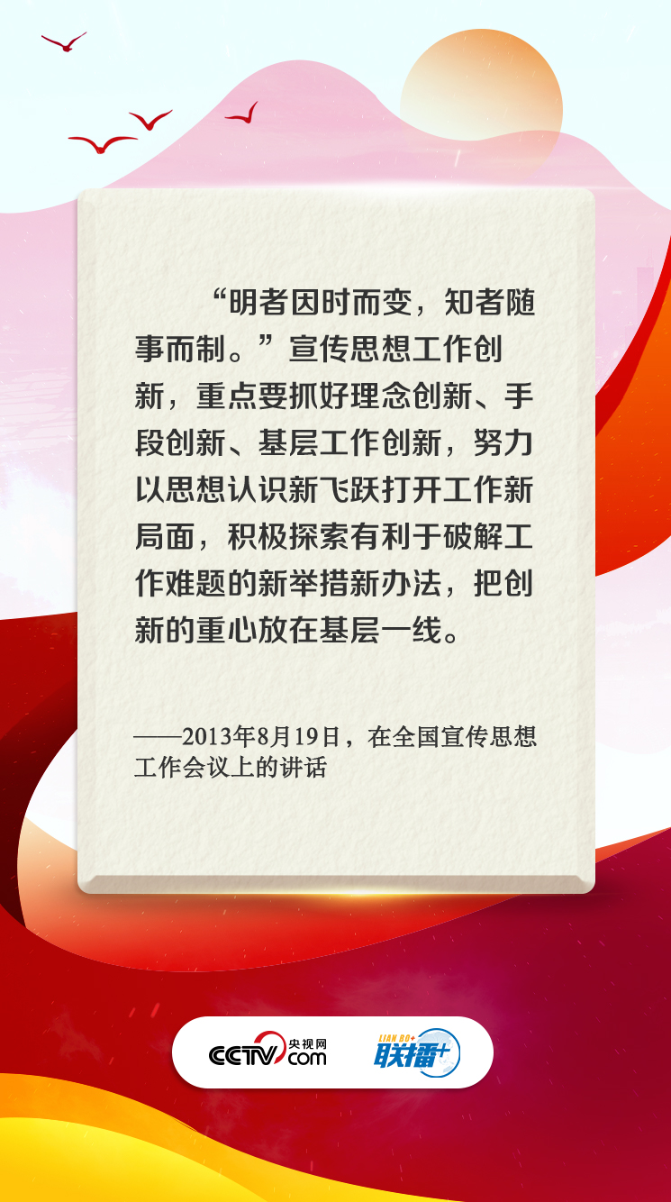 如何用創(chuàng)新打造宣傳思想工作的強(qiáng)大引擎?如何在創(chuàng)新中贏得主動(dòng)權(quán)?回顧習(xí)近平總書(shū)記這些重要論述,央視網(wǎng)《聯(lián)播+》與您一起學(xué)習(xí)。