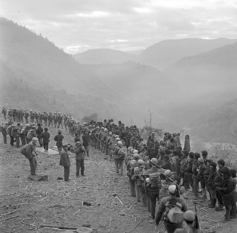 1962年12月7日,打隴宗普東村人民歡送主動后撤的西藏地方邊防部隊。藍志貴 攝