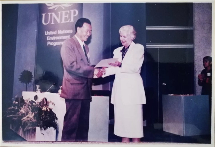 接過聯(lián)合國環(huán)境規(guī)劃署頒發(fā)的