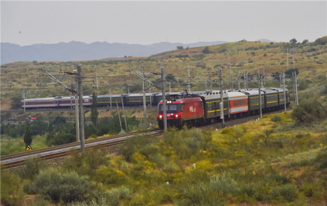 包蘭鐵路上的列車正在平穩(wěn)運行 (張玫/攝)