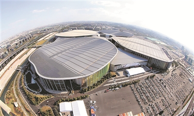 2018年11月5日,上海國家會展中心,首屆中國國際進口博覽會開幕。上海國家會展中心,一片巨型的“四葉草”,仿佛一個地球村,將參展的各國緊密聯(lián)系在一起。(資料圖片)