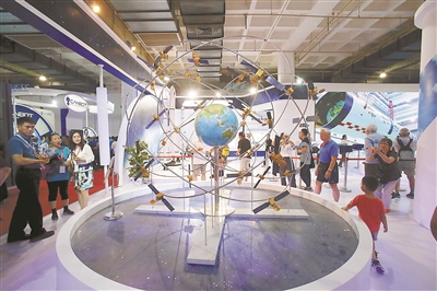 2017年6月9日,參觀者在北京科博會(huì)上觀看北斗導(dǎo)航衛(wèi)星星座。(資料圖片)
