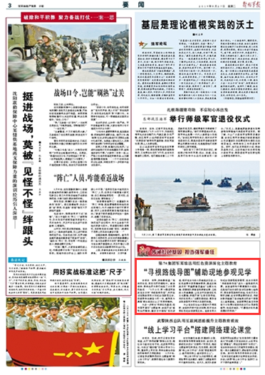 為進一步深化“傳承紅色基因、擔當強軍重任”主題教育,該旅開設(shè)“感悟先烈精神,握好手中鋼槍”系列講座,組織官兵與戰(zhàn)斗英雄座談互動,從紅色故事中汲取精神營養(yǎng);建成反映旅史的“軍旗跟著黨旗走”主題文化墻,改建連隊榮譽室和榮譽走廊,立起戰(zhàn)斗英雄雕像,讓官兵時刻接受紅色文化熏陶;積極開展“弘揚優(yōu)良傳統(tǒng),當好紅色傳人”主題實踐活動,激發(fā)官兵投身強軍興軍偉大實踐的熱情。